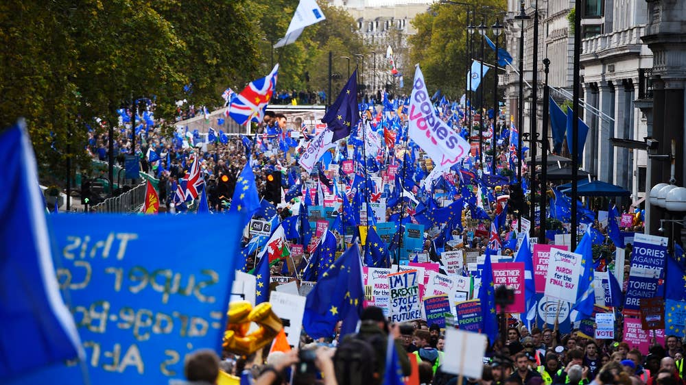 Anti-Brexit protesters demonstrate in London during the Final Say Brexit march on 19 October