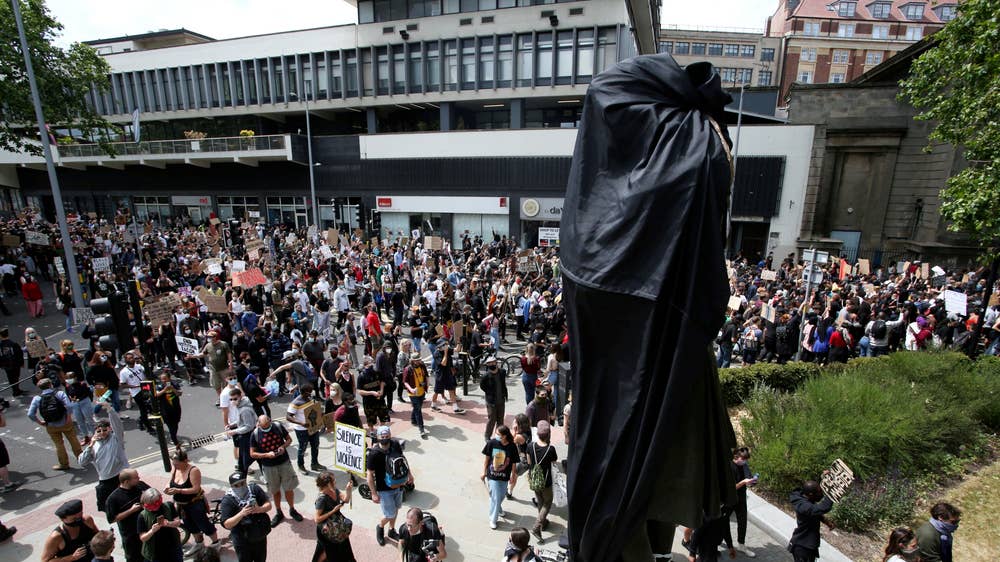 Protesters throw the statue of Edward Colston into Bristol harbour