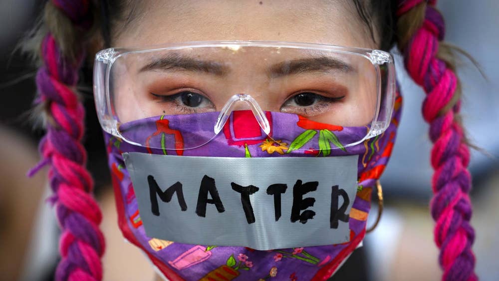 A woman looks on during a protest against the killing of George Floyd in Osaka city, western Japan. Some 700 protesters attended the rally organised by supporters of the Black Lives Matter movement in Japan as it took place amid coronavirus pandemic. Japanese tennis star Naomi Osaka, who was born in Osaka city, expressed her support for the protest on her Twitter account