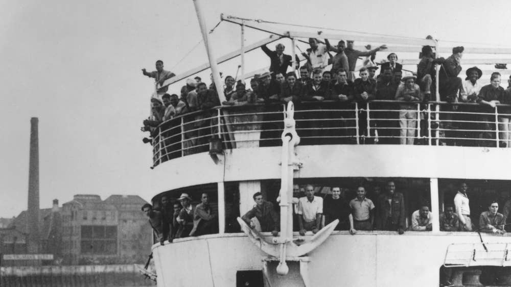 Newly arrived Jamaican immigrants on board the ‘Empire Windrush’ at Tilbury in 1948.