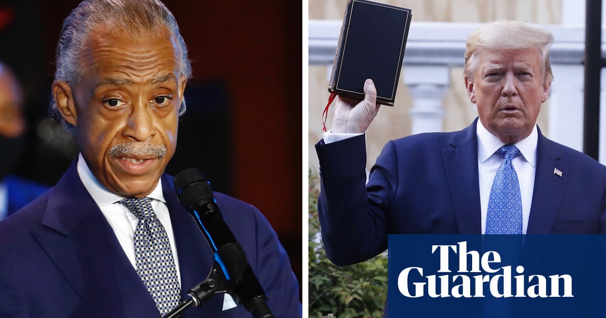 The Rev Al Sharpton gave a eulogy at a memorial service for George Floyd in Minneapolis and hit out at Donald Trump for posing with a Bible in front of a church in Washington DC. ‘We cannot use Bibles as a prop,’ Sharpton said. ‘For those that have agendas that are not about justice, this family will not let you use George as a prop.’ The US president sparked outrage from religious leaders, top Democrats in Congress and others when he visited the church across from the White House and posed holding a Bible after law enforcement officers cleared protesters using teargas