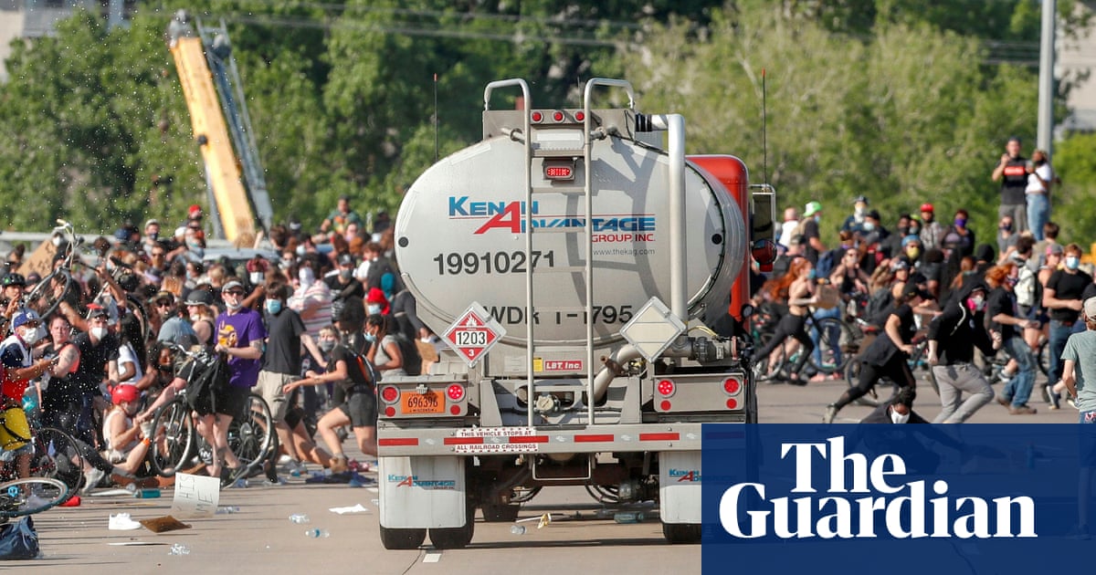 A truck driver is in custody after driving into a throng of protesters on a closed interstate near Minneapolis. He was beaten by protesters before police arrived. It did not appear that any marchers were struck by the truck as it moved through the crowd on the westbound lanes of Interstate 35, honking. The freeway was closed to traffic at the time. Witnesses said the truck driver was dragged out of the cab of his tractor-trailer rig and beaten by protesters before he was taken into custody by Minneapolis police