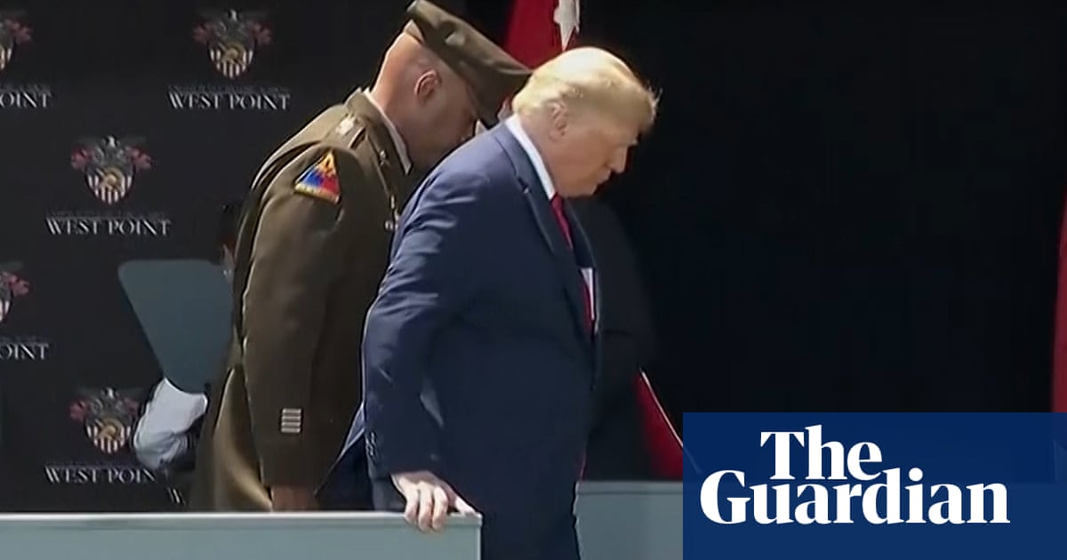Trump’s apparent struggles with the ramp echoed scenes from January 2017, shortly after his inauguration, when he seemed unsteady while walking on a gentle slope at the White House and took the then British prime minister Theresa May awkwardly by the hand.